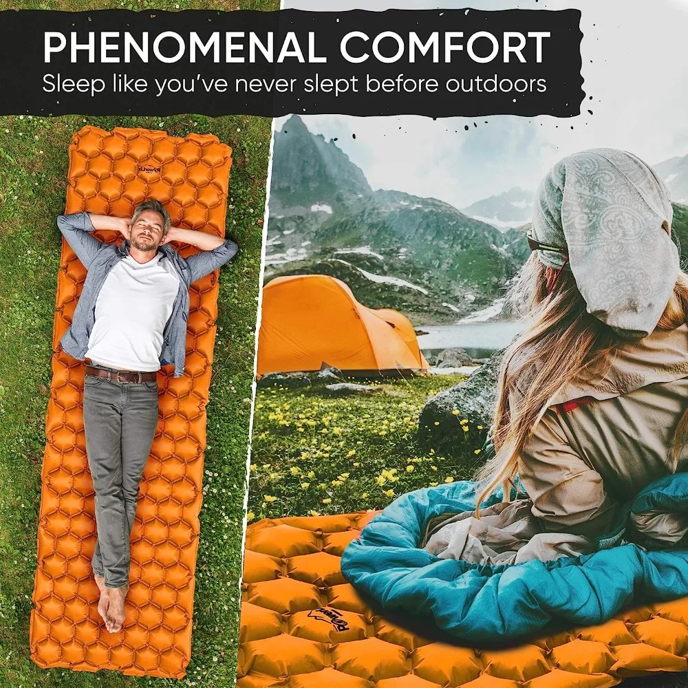 REJUVENATE YOUR BODY: camping pad has revolutionary hexagon design made with body mapping technology. The hexagon air cells ergonomically support all of your pressure points, giving you superior support and comfort all night long, no matter how you sleep! The sleeping mat is also a camping gear must haves luxury, being comfortable yet lightweight. It rolls up small, making it effortless to carry around. The cot comes in a variety of color choices, sure to match anyone’s personality.